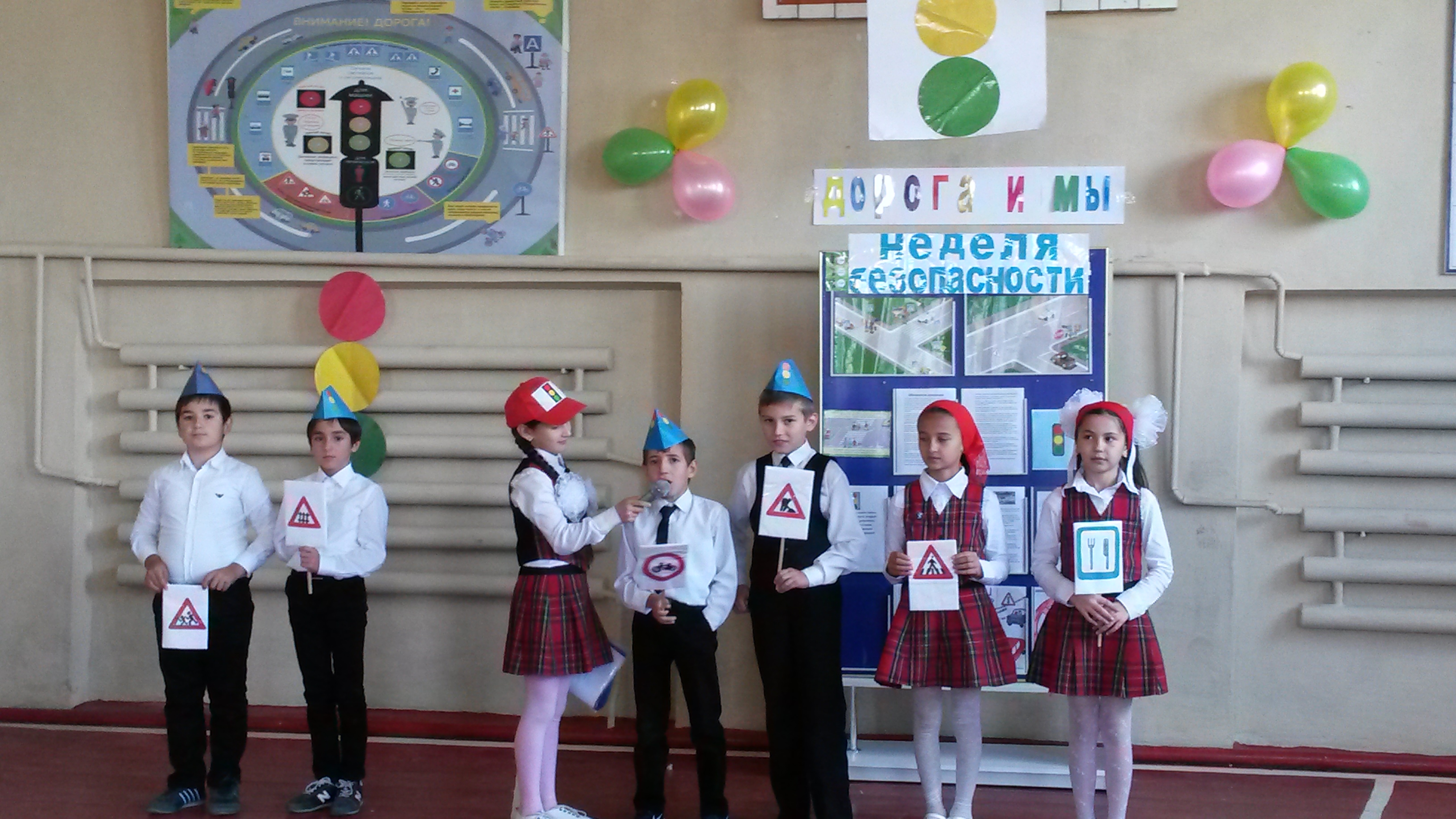 В рамках Всероссийской недели безопасности классными руководителями проводилась внеклассная работа по пропаганде соблюдения правил поведения на дороге: массовые мероприятия, конкурсы плакатов, рисунков, викторины, классные часы. Были подготовлены и проведены внеклассные мероприятия по темам: - Обучающая игра «Дорога и мы» проведена с учащимися 4 классов Шатуевой З.М.; - Викторину «Знай и соблюдай правила дорожного движения» с учащимися 7-8кл. организовала кл.руководитель Мерзуева М.А.; - Классный час « По безопасным дорогам в безопасный мир» с учащимися 5 классов провела классный руководитель Саламова Х.С. ; -Утренник Страна безопасности» во 2 классе провела учит. нач. классов Турлуева М.У. – Классный час «Безопасность и дорога» в 10 классе (кл.рук. Даудова А.А.. Организована встреча с инспектором ОГИБДД старшего лейтенанта Махтиевым И.И. с обучающимися. Ребята внимательно слушали его выступление, активно задавали вопросы, разбирали сложные ситуации. С учащимися начальных классов проведены практические занятия по формированию у них навыков безопасного участия в дорожном движении.