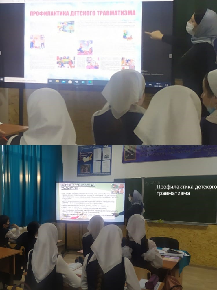 01.2021г. классный руководитель 6а класса Мусаева М.А. провела классный час «Профилактика детского травматизма».На классном часе были проанализированы ситуации, которые ведут к травматизму.