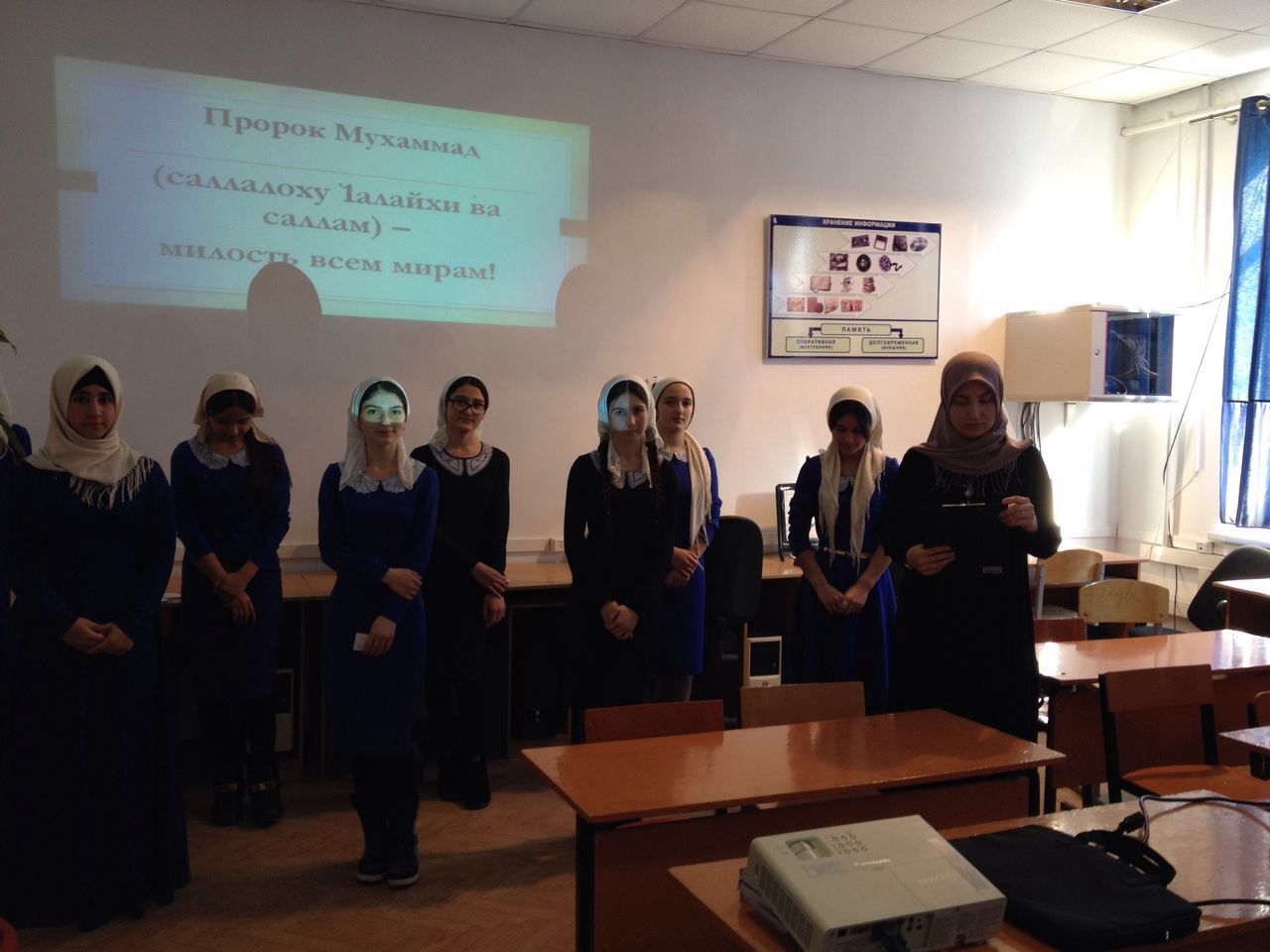 В 9 классе под руководством Саламовой Х.Ш. был организован показ видеофильма «Послание», посвященное Пророку Мухаммаду (да благословит Его Аллах и приветствует).