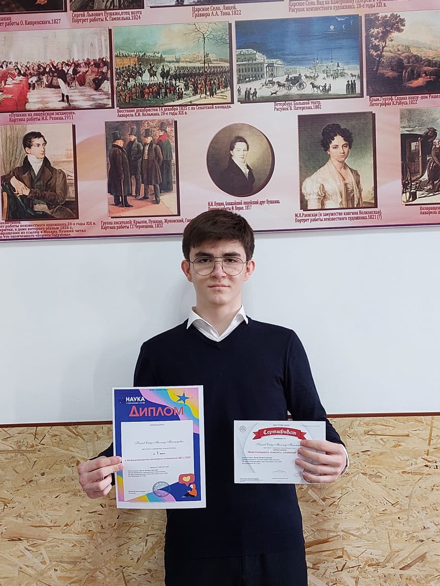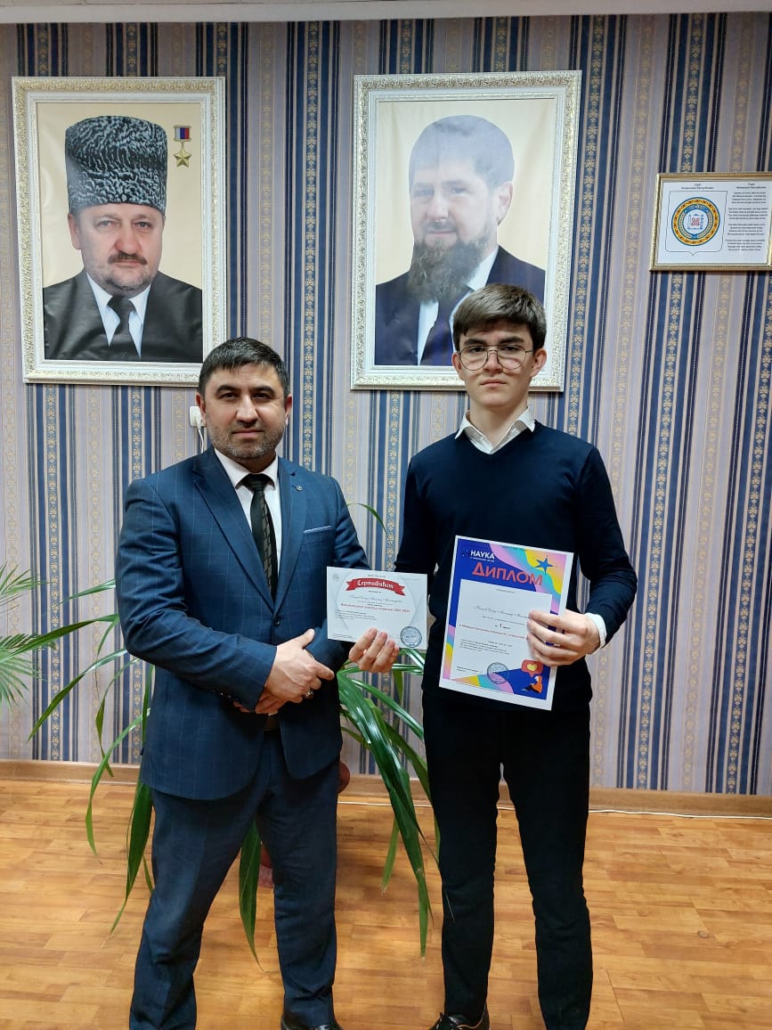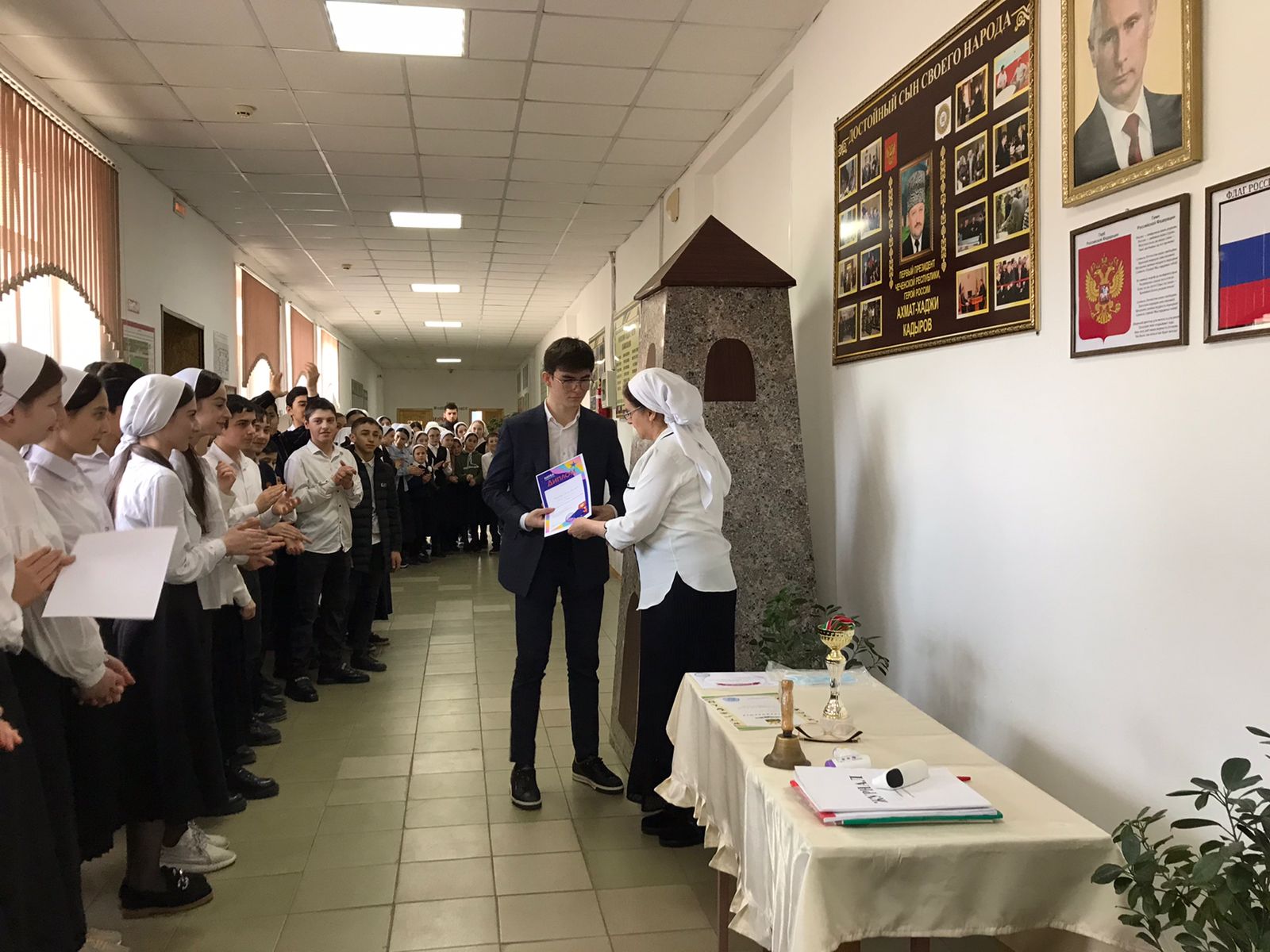 28 февраля в торжественной обстановке прошло награждение обучающихся, отличившихся в конкурсах муниципального и международного формата. Грамотами награждены следующие обучающиеся: - обучающаяся 8 "В" класса Гайрабекова Хава Имрановна, занявшая 3 место в мунипальном этапе Всероссийского конкурса " Без срока давности";- обучающийся 8 "В" класса Кагаев Сайд-Магомед Магомедович, занявший 1 место в 4 Международном конкурсе сочинений 2021-2022гг. Желаем творческих побед и больших успехов в учебе.