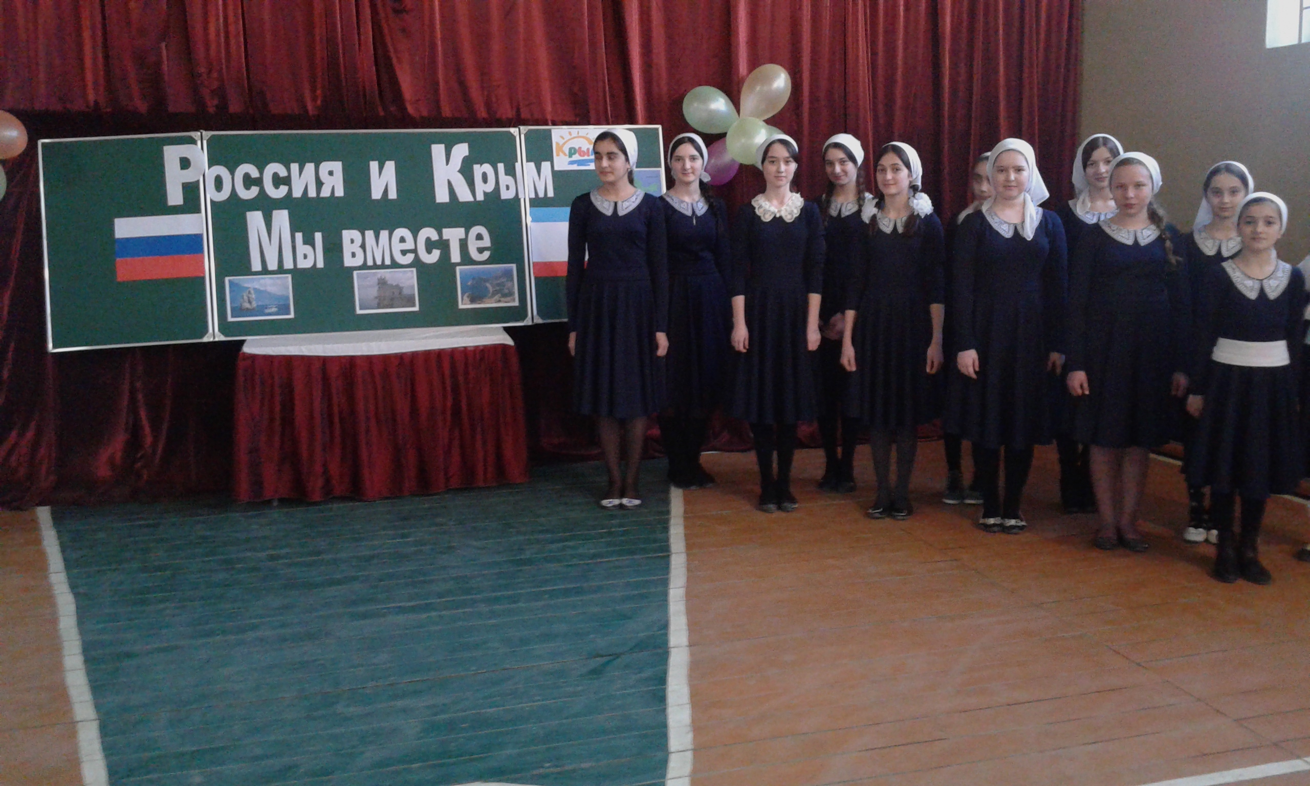 Организатор мероприятия –классный руководитель Бисултанова Л.И. Классный час был посвящён воссоединению полуострова Крым и города Севастополя с Россией. На данном мероприятии присутствовали - директор школы Джанхотова М.Ш., зам.директора по ВР Анзорова М.С., педагог-организатор Исаев Р.Х., учителя, а также обучающиеся 7-8классов. Организатор мероприятия Бисултанова Л.И. в своей вступительной беседе подчеркнула, что воссоединение Крыма с Россией- это не только историческое и политическое событие, но и воссоединение культуры, памяти и воинской славы. Народы Крыма были веками связаны с Россией общими традициями, историей . В ходе мероприятия обучающиеся познакомились с историей, географическим расположением и основными достопримечательностями Крымского полуострова, произведениями русских поэтов о Крыме, рассмотрели особенности исторического и культурного единства республики Крым и города Севастополя с Российской Федерацией. Дети проявили интерес к изучению культурного прошлого своей Родины, чувство уважения к истории России и гордости за свою страну и ее народ.