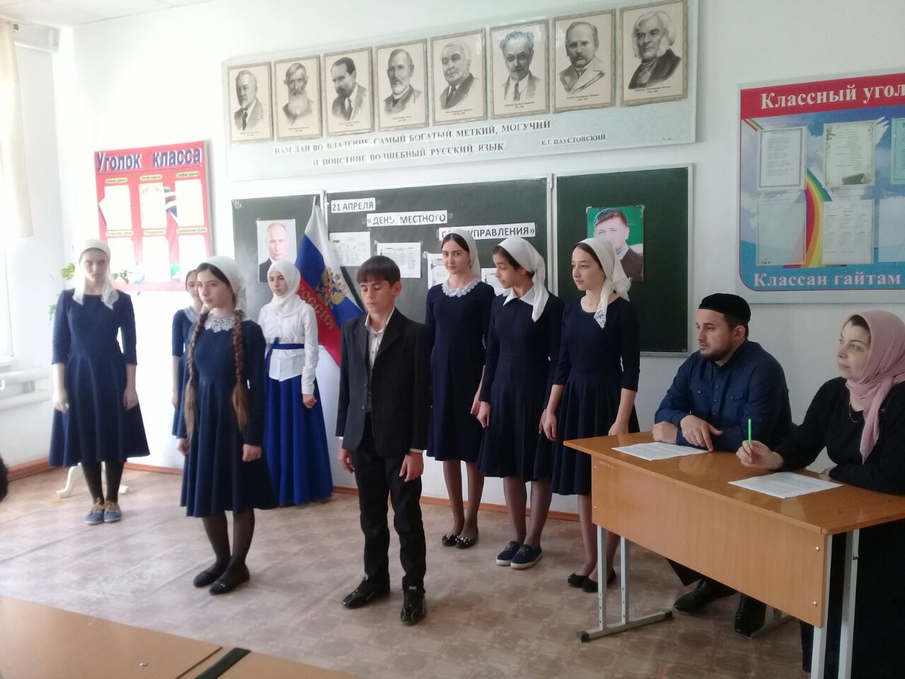 Мероприятие дало возможность ребятам прикоснуться к истории создания местного самоуправления, вспомнить тех, кто стоял у его истоков, проявить уважение к тем, кто и сегодня обеспечивает наилучшие условия для включения граждан в общественную деятельность. Члены команды ЕДЮО «Юные Кадыровцы» под руководством педагога-организатора по внеклассной работе Хажмурзаевой З.Х. подготовили и провели для учащихся 6-8 классов классный час « 21-апреля –День местного самоупраления». На мероприятии присутствовали представитель администрации с. п. Верхний-Наур Ахметханова З.Ч., директор школы Джанхотова М.Ш.