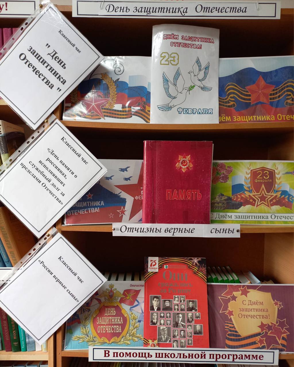 12.02.202412 февраля 2024г. в МБОУ"СОШ 1 с.п.Верхний-Наур" согласно плану воспитательной работы, заведующей библиотекой Масаевой Малкан Юнусовной была тематически оформлена книжная выставка «Отчизны верные сыны», приуроченная к Дню защитника Отечества.