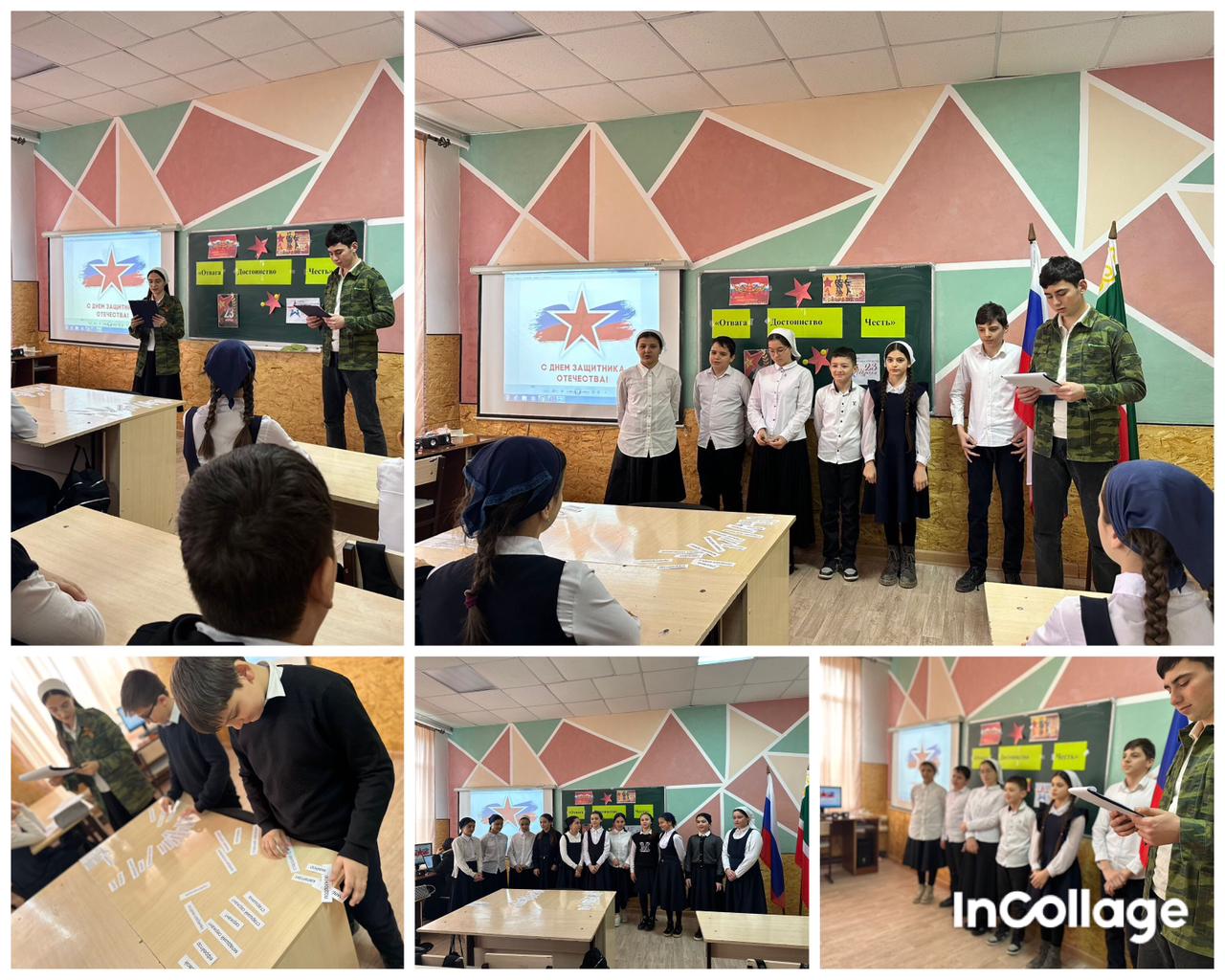 26.02.202422 февраля 2024 года классные руководители 5-х классов Калаева З.Ж., Турлуева М.А. в целях воспитания у обучающихся патриотизма и гражданственности, уважения к исторической памяти защитников Отечества, провели внеклассное мероприятие «Отвага. Достоинство. Честь.», посвященное Дню защитника Отечества (23 февраля 2024 года).