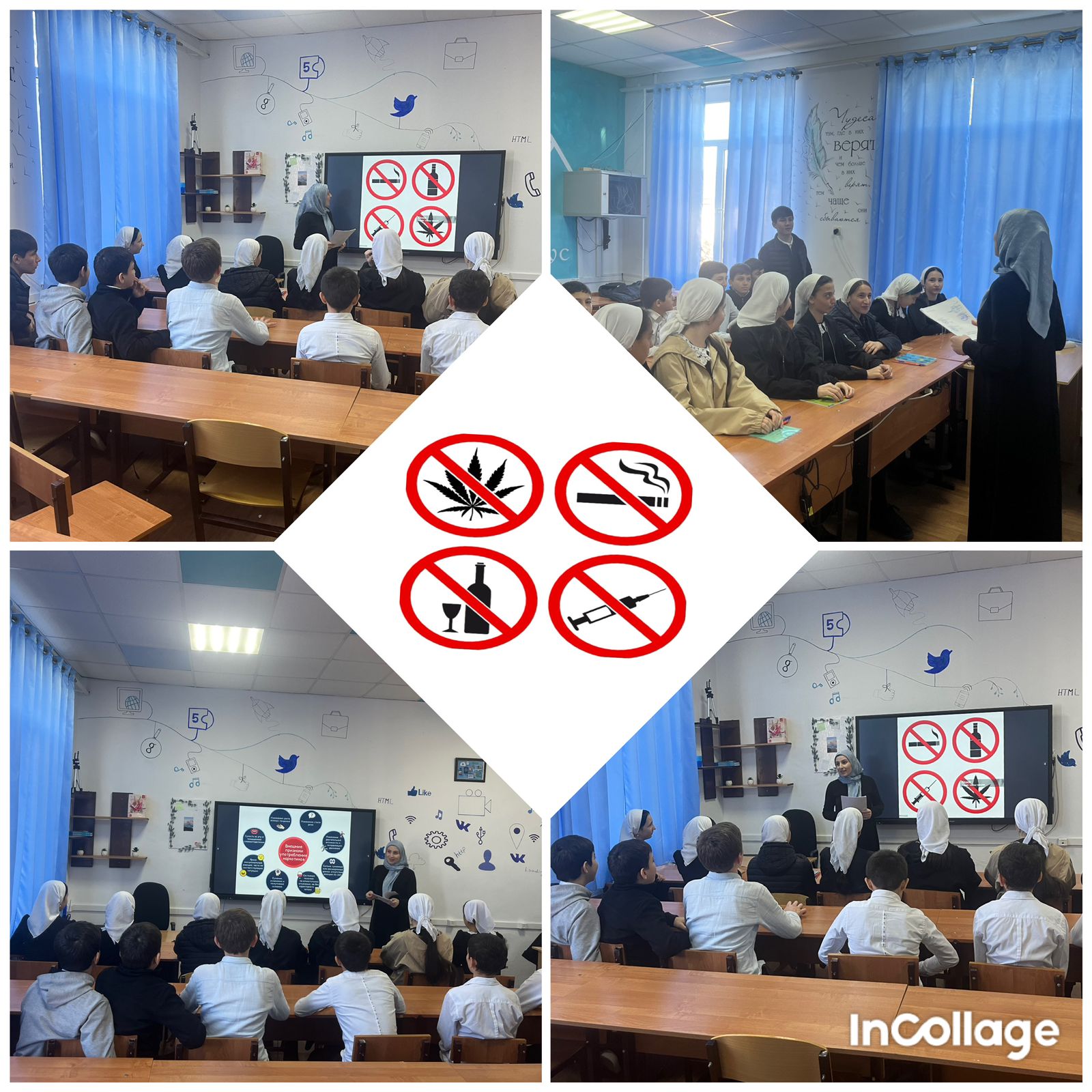 11.03.202411 марта 2024г. Был проведен семинар педагогом-психологом С.Ю.Хашиевой для обучающихся «По профилактике употребления табака,алкоголя и психоактивных веществ».Цели семинара:формирование положительного образа будущего,свободного от употребления психоактивных веществ(ПАВ).Формирование представлений о том,что употребление ПВА ограничивает возможность жизненного выбора.