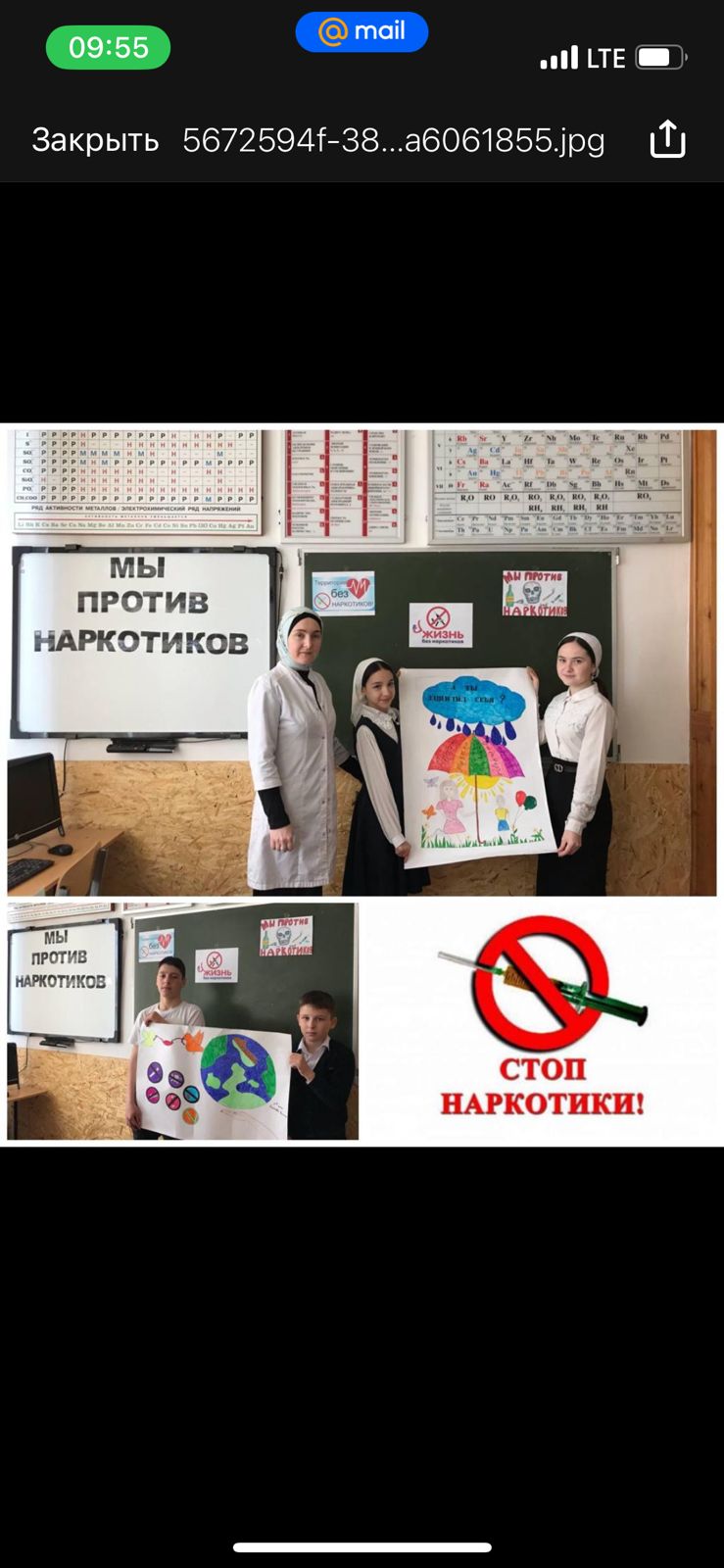16.05.202408.05.2024 в МБОУ «СОШ №1 с.п.Верхний-Наур» педагогом-психологом совместно с медсестрой проведено антинаркотическое мероприятие «Мы против наркотиков». Цель мероприятия — формирование антинаркотической позиции, пропаганда здорового образа жизни, предупреждение распространения наркомании среди школьников. В мероприятии приняли участие обучающиеся 7-8 классов школы.