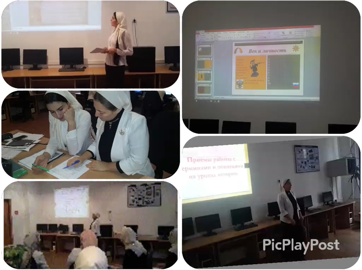 Семинар прошел на тему "Приемы работы с понятиями и терминами на уроках истории " Хушаева З.М.,предметный семинар на тему "Краткая характеристика персоналий в период с 1985 г. по 2012 г