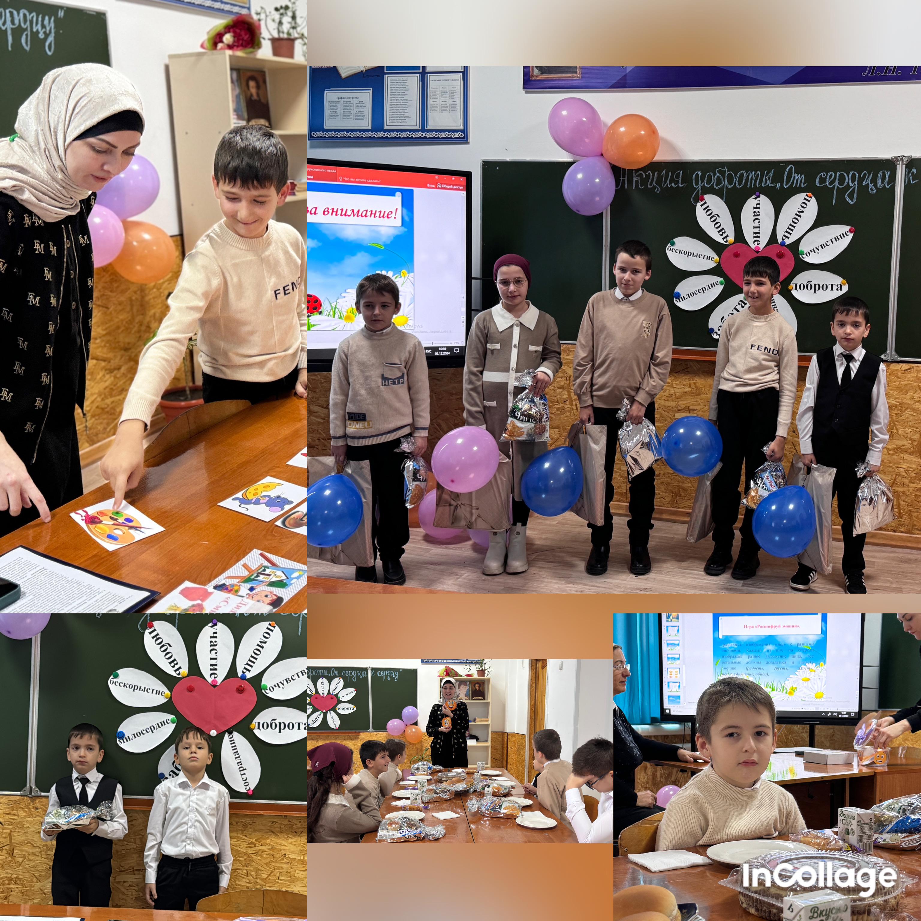 03.12.202403.12.2024г. В МБОУ "СОШ №1с. п. Верхний-Наур" педагогом-психологом Масаевой Малкан Юнусовной совместно с социальным педагогом, и учителями, работающими с обучающимися ОВЗ проведёна акция доброты" От сердца к сердцу". Акция была проведена в целях расширения знаний обучающихся о доброте, и её роли в жизни человека, формирования у обучающихся стремления совершать добрые дела.Воспитывать взаимоуважение, вежливое обращение, способность чувствовать, понимать себя и другого человека.Детям были вручены подарки от педагогического коллектива.