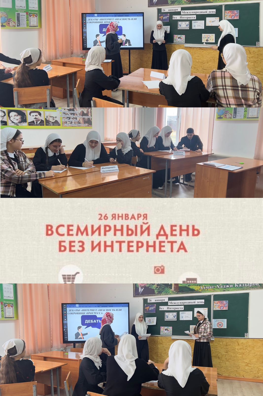 27.01.2025Международный день без Интернета справляют активисты общественных организаций, пользователи интернета, энтузиасты тематических сообществ и объединяющей всех характеристикой празднования является добровольное отречение всех участников в этот день от пребывания в мировой сети - полностью и абсолютно.Последние годы к акции подключаются библиотеки, приглашающие всех желающих на бесплатные просветительские мероприятия и музеи, открывающие свои экспозиции для бесплатного посещения.Советник директора по воспитанию и взаимодействию с детскими общественными объединениями Сулейманова Х.А. совместно с 7-8 классами организовали дебаты «Интернет: опасность или сокровище прогресса?», в рамках которых участники могли аргументировано обсудить полярность мнений о пользе и вреде Всемирной сети Интернет в современном мире.