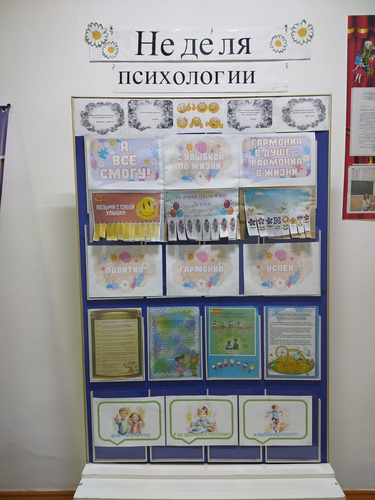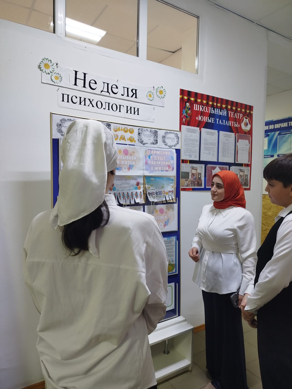 С 24 по 30.11.25г. в МБОУ"СОШ 1 с.п.Верхний-Наур" проходит "Неделя психологии", объявленная на школьной линейке, на эту неделю педагог-психолог МасаеваМ.Ю. и советник директора Джамурзаева П.Д. оформили красочный стенд в коридоре школы.