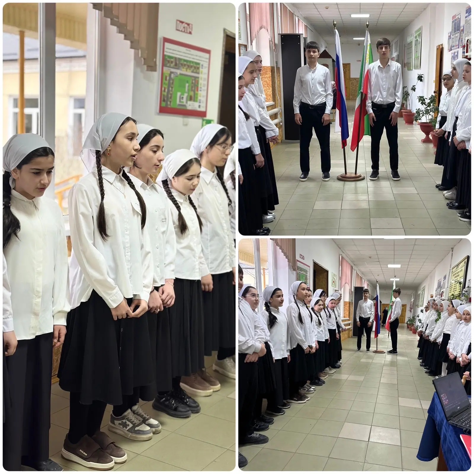16.03.2026 г. Еженедельная традиционная линейка выноса флага Российской Федерации и Чеченской Республики в МБОУ «СОШ № 1 с.п.Верхний-Наур» в рамках федерального проекта «Разговоров о важном».