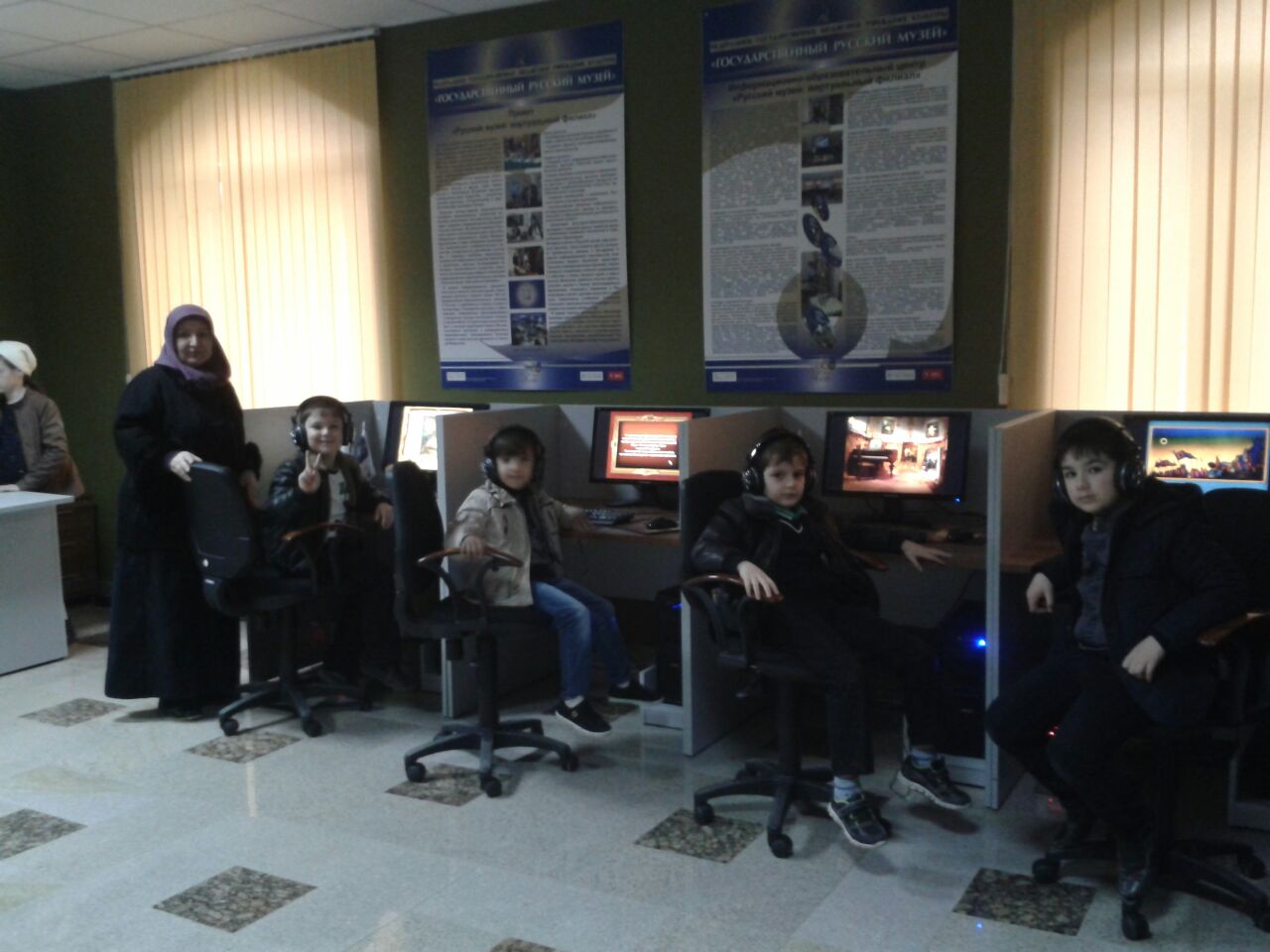 Это первый на Северном Кавказе информационно-образовательный центр «Русский музей: виртуальный филиал». Цель посещения: приобщение обучающихся к ценностям русской культуры, историческому прошлому России, воспитание гражданственности, художественных, эстетических вкусов, общечеловеческих ценностей. Перед посещением музея Шатуева З.М. провела беседу, где обучающиеся получили необходимые знания, информацию о музее, что обостряло интерес детей к нему. Группа состояла из 24 человек. Подарком для обучающихся стали красочные образовательные игры для детей на компьютере . Эта игры пазлы созданы при поддержке Государственного Русского музея.