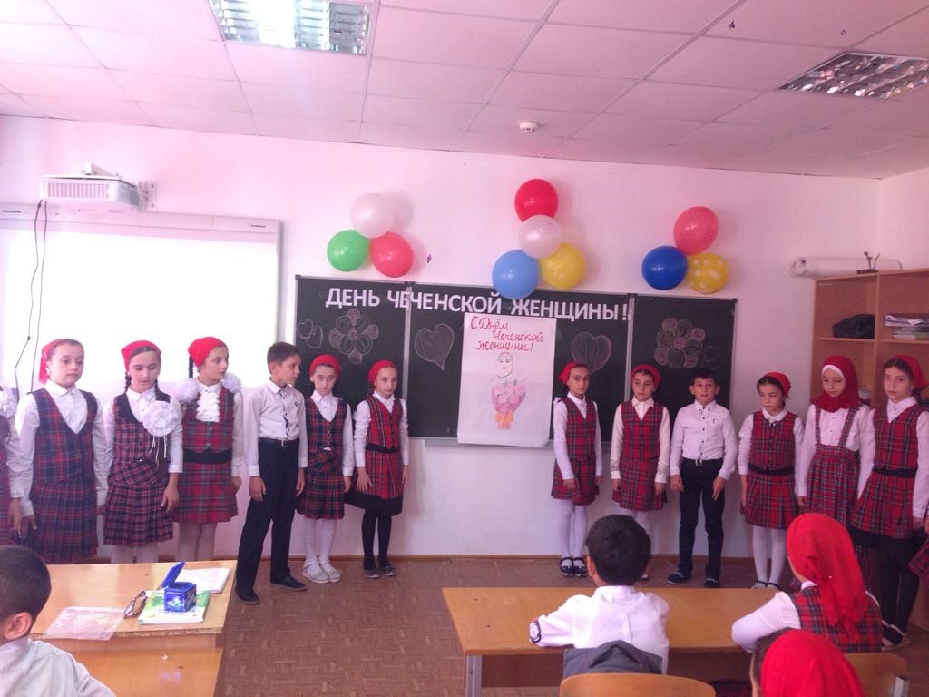 Классные руководители провели в своих классах утренники, беседы, классные часы, литературно-музыкальные композиции. Среди обучающихся 2-4 классов проведено мероприятие «Имя женщины- мир», посвященный Дню чеченской женщины. Утренник подготовила и провела учитель начальных классов Кагерманова З.