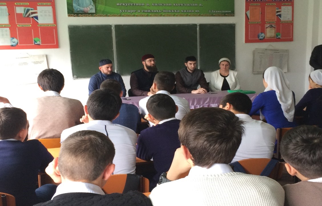 14 сентября 2018г. была проведена встреча с целью информирования о различных потенциальных угроз, исходящих от сайтов, пропагандирующий суицид. В лице директора школы Джанхотовой М.Ш., педагога по ДНВиР Исаева Р. Х., социального педагога Давлетмурзаевой Л.Ш., кадия Надтеречного района Хайдарханова А.М. была затронута тема об опасностях социальных сетей. В своем выступлении муфтий района Хайдарханов А.М., посоветовал родителям активнее интересоваться увлечениями своих детей, а также уделять большое внимание занятости детей в свободное время.