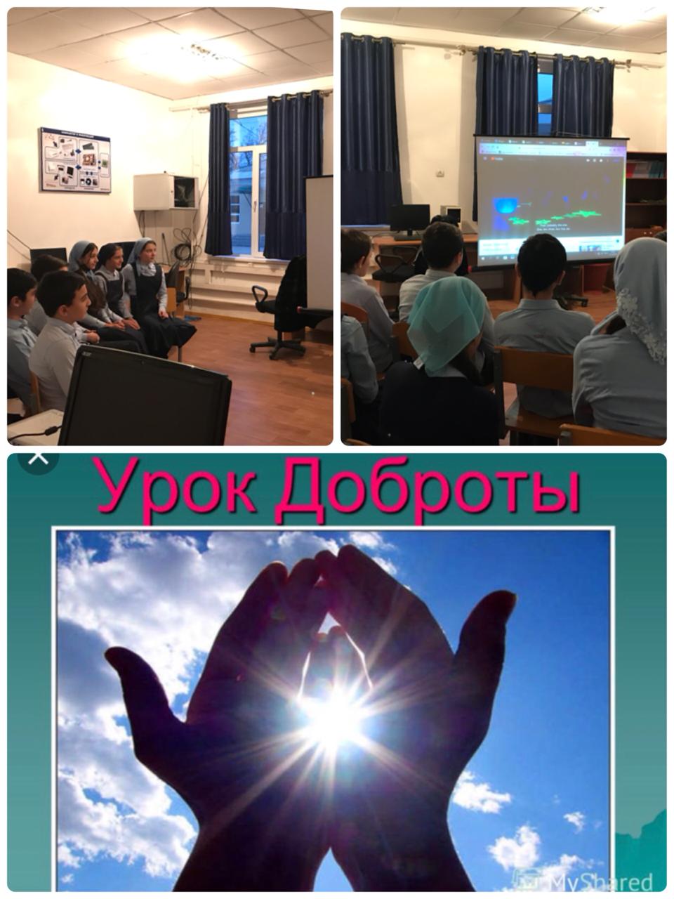 21.12.2018На основании письма Министерства образования и науки ЧР №1674/07-66 от 20.12.2018., с целью формирования толерантного отношения к обучающимся с ограниченными возможностями здоровья и с инвалидностью в МБОУ "СОШ №1 с. п. Верхний-Наур" 21 декабря был проведен Урок Доброты с обучающимися 6-х классов.