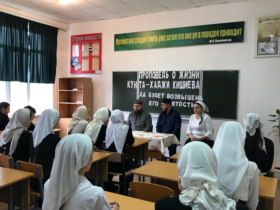 14 января 2019 года была организована встреча обучающихся 9-11 классов с имамом села Эгиевым Х.,посвященная Дню почитания увлия Кунта-Хаджи Кишиева.