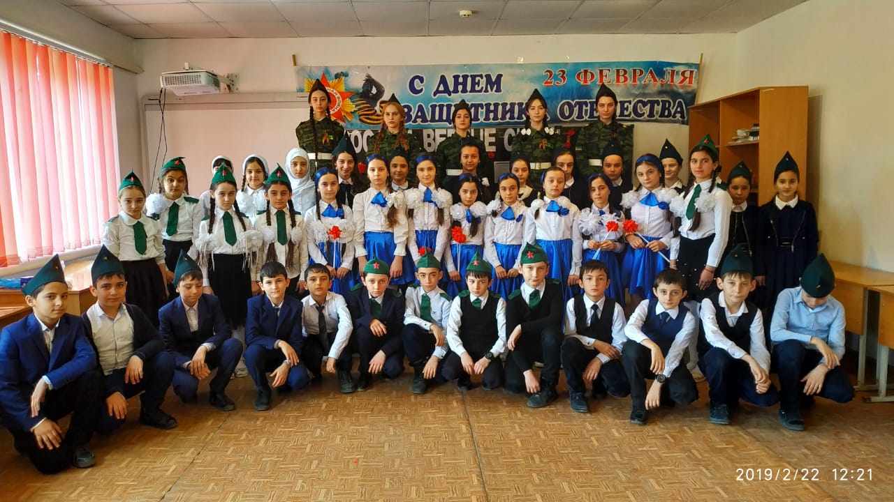 22.02.2019В целях формирования у учащихся готовности к защите Отечества и развития чувства гордости за свою страну, патриотического сознания и в связи с празднованием Дня защитника Отечества в МБ0У"С0Ш№1 с.п. Верхний- Наур" командой ЕДЮО было проведено мероприятие "России верные сыны"!
