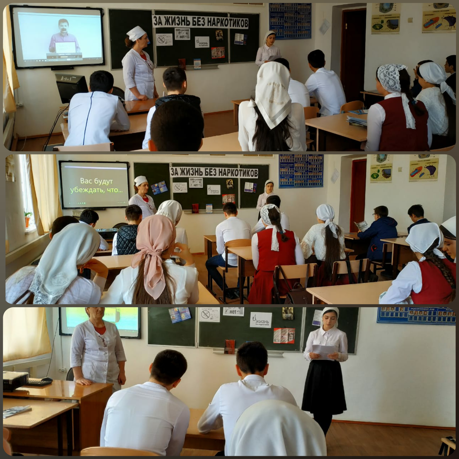 12.03.201912.03.2019г. в МБОУ «СОШ №1 с. п. Верхний-Наур» команда ЕДЮО « Юные Кадыровцы» организовали беседу с участием медицинской сестры Турлуевой С.А. среди учащихся 9-11 классов на тему «За жизнь без наркотиков» с цклью формирования устойчивого навыка против наркотиков и умения активно противостоять пагубным привычкам.