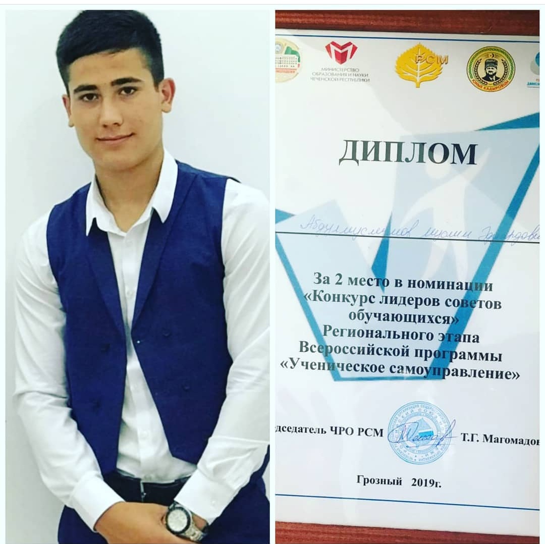 Ученик 11 класса Абдулмуслимов Муслим Эдуардович занял II место в региональном этапе Всероссийской программы "Ученическое самоуправление" в номинации "Конкурс лидеров советов обучающихся".
