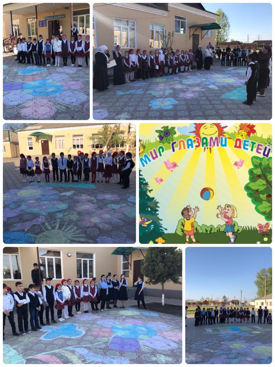 22 апреля в МБОУ "СОШ№1 с. п. Верхний-Наур" среди обучающихся 3-х классов был проведен конкурс рисунков на асфальте "Мир глазами детей", приуроченный празднованию "Дня Весны и Труда"